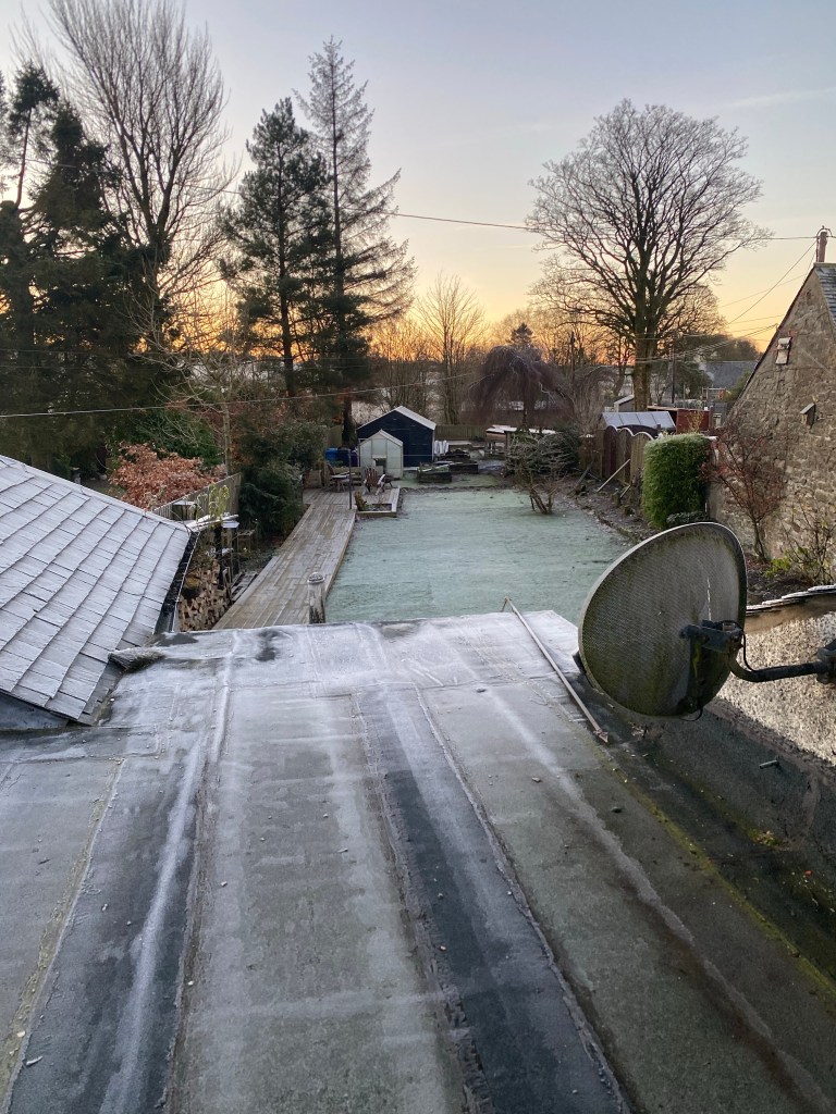 I have my jacket off and even had my jumper off earlier. The sun has been shinging almost all day. It’s been cold but it’s beautiful now. I have fur lined boots and fleecy leggings on and I am pretty cosy.