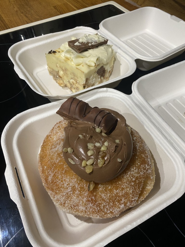 I had an oat milk latte and a Biscoff Rocky Road.