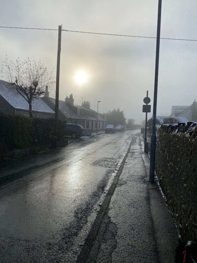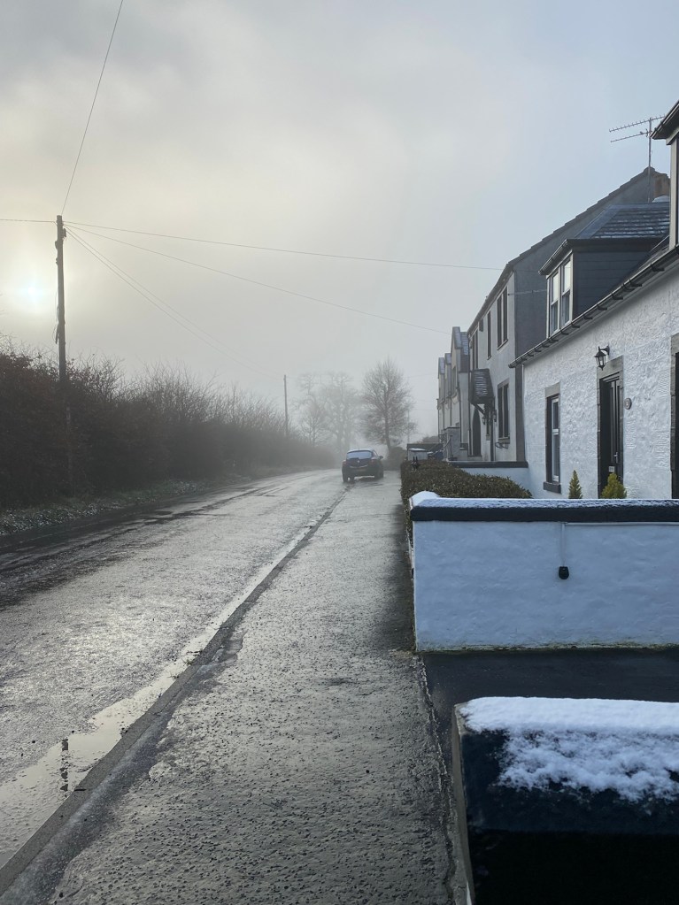 Some roads didnāt even have tracks in the snow. I drove down a hill near our local whisky bond and a truck turned the bend and came towards me. I pulled into the side and tapped the brakesā¦.